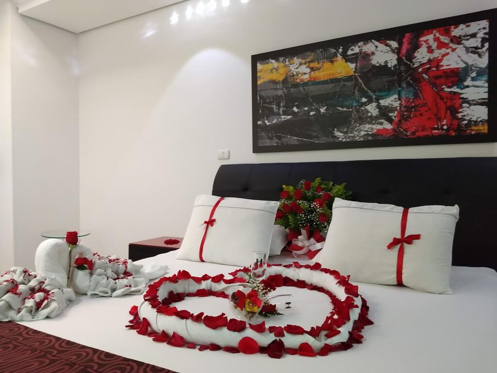 Cuenta con una cama doble, jacuzzi interno, sofá cama, mesita de estar, Tv, escritorio, armario, aire acondicionado, cajilla de seguridad, una mesita de noche y baño.