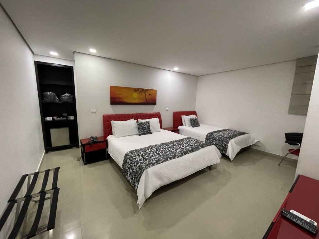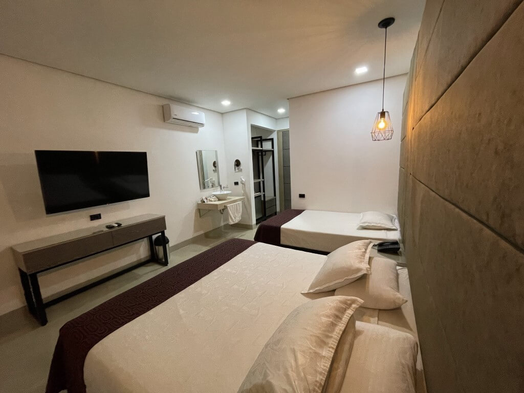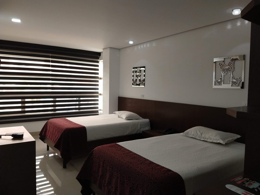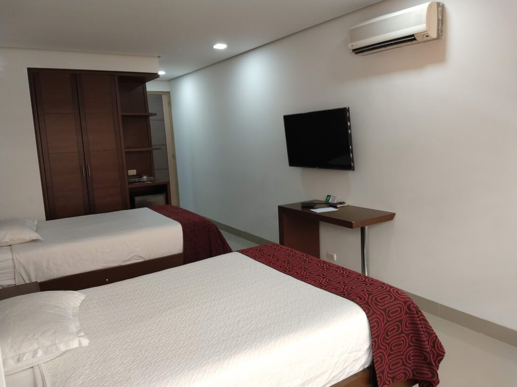 cuenta con 2 camas sencillas ,tv ,armario,escritoio,aire,cajilla seguridad